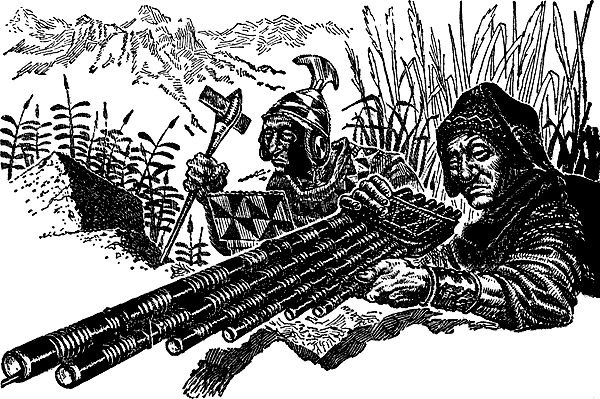 The facts in "Despoilers of the Golden Empire" remain. They are facts. Francisco Pizarro and his men—an army of less than two hundred—actually did inflict appalling damage on the Inca armies, even if they were outnumbered ten to one, and with astonishingly few losses of their own. They did it with sheer guts, too; their equipment was not too greatly superior to that of the Peruvians, and by the time they reached the Great Inca himself, none of the Peruvians believed that the invaders were demons or gods. But in the face of the Spaniards' determined onslaught, they were powerless.