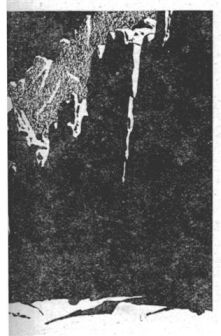 "... And I don't know how long I sat there after I found the water." He looked at the Goldburgian device he had made out of wire and tubing. "Finally I built this thing. These caves were made of lava. They must have been formed by steam some time, because there's a floor of ice in all of 'em.