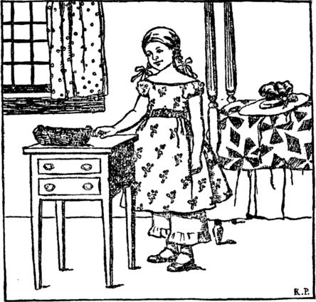 When she was shown upstairs to lay Her hat upon the bed, She saw a little basket there, With needles, wax and thread. "I wonder," said untidy Jane, "If Mattie likes to sew; I'm glad that I have never learned; I should not care to know." |