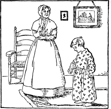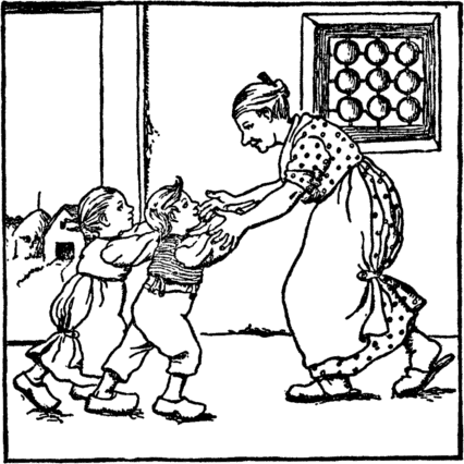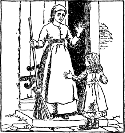 The beet tears melt her back once more Into the child she was before. She does not stay to wipe her eyes, But home with eager feet she hies. "Oh mother, mother dear," cries she, "Henceforth a cleaner child I'll be." |