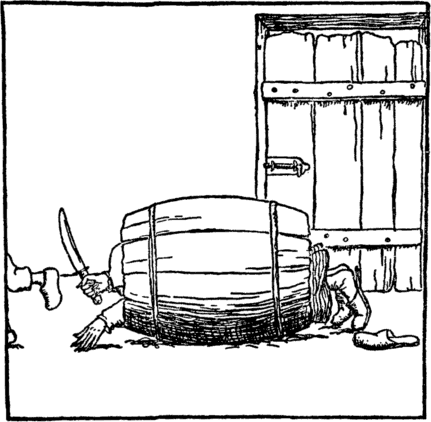 The children see a barrel near; "Quick! into it! The witch is here!" |