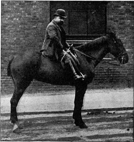 The first plate in the book is dated 1893, and serves as a frontispiece. The costumes of the lady and gentleman are familiar enough, although we note with surprise that the gentleman's coat-talks seem to have a crinoline cast, and if the turned-up bottoms of his trousers are a little mortifying, it is atoned for by a triumphant attitude which disarms hypercriticism. Also the lady's posture makes it difficult for us to tell whether it is a stick or an umbrella she is carrying.