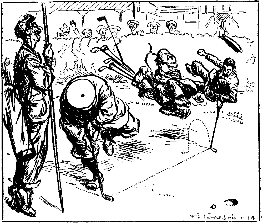 My brilliant scheme was to pop the silver, and I managed to get away with it next morning (Wednesday) without arousing Joyce's suspicions. I got £20 on it at the local hypothecary's, squared the landlord, leaving a few pounds in hand, and hid the ticket in my writing-case. I spent the morning on the alterations for Short, and the afternoon on the links, and lost three good balls—curious coincidence, as I had found three such useful ones at the pawnbroker's in the morning.