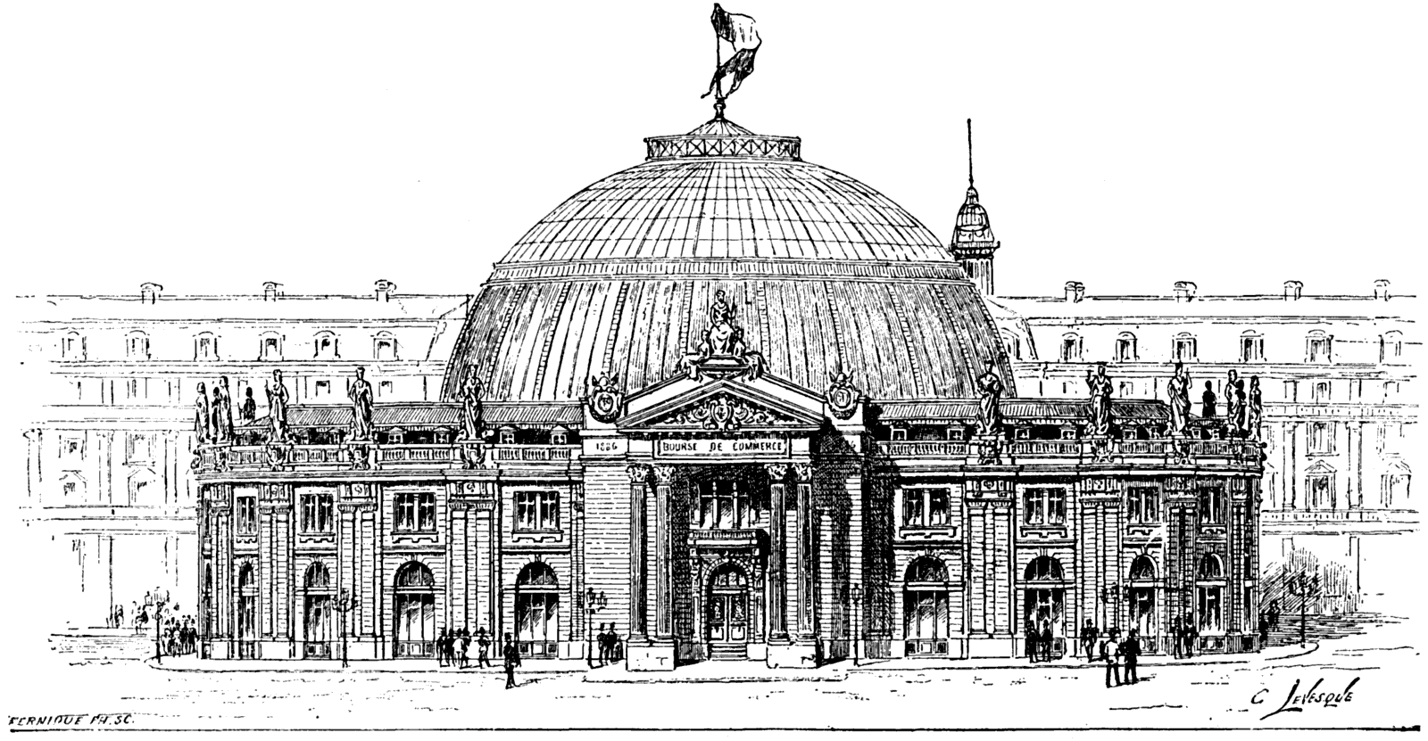 The smoke that envelops the ships, the thunder that echoes in the calm of the sea, and the jet that rises in the air produce a thrilling effect and give an idea of the power of man carried to the last expression.—L'Illustration.