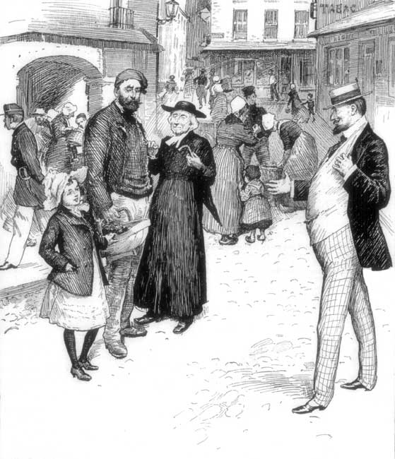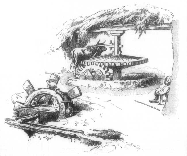 'I never saw such a stubborn little brute,' he muttered, after many fruitless attempts to turn the donkey round. 'Perhaps if the lady would take the donkey's head, we might just lift the cart; and the little gentleman could throw stones at the black donkey.'