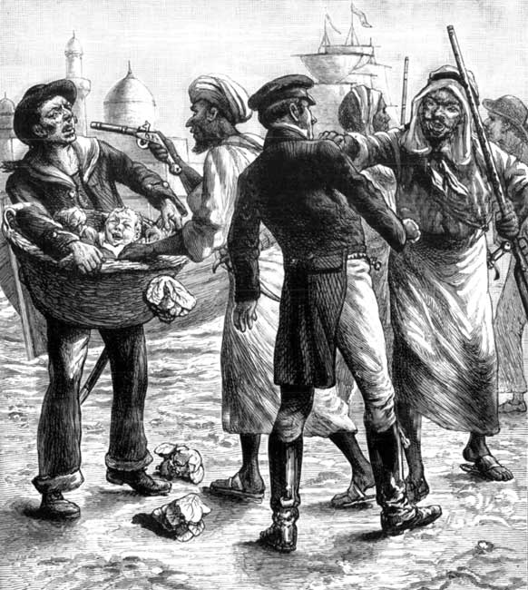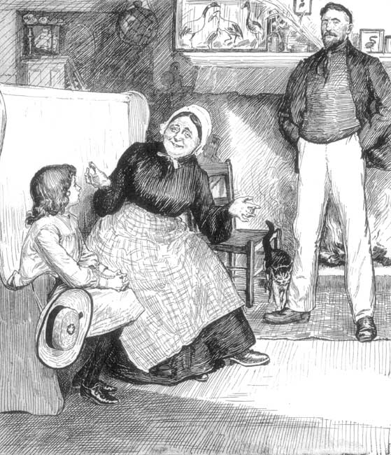'Why, that is only Tim and Sambo talking to each other,' his father answered, laughing heartily. 'Sambo is saying, "I say, where do you come from?" and I suppose Tim is telling him that he has just come from a greengrocer's shop; but I wish that they would be quick and finish their conversation.'