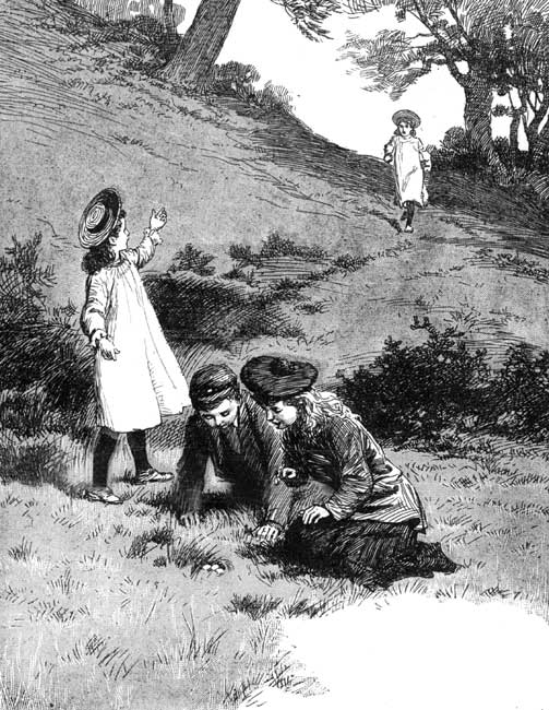 'Don't give him so much to eat, Mrs. Raeburn. Stop that, Tim.' Tim had taken advantage of the conversation to try and get a bite of grass from the side of the road. 'Stones again, Harry,' and Harry, only too glad to feel that he was assisting in the driving, rattled the stones gaily, laughing and chattering with delight.
