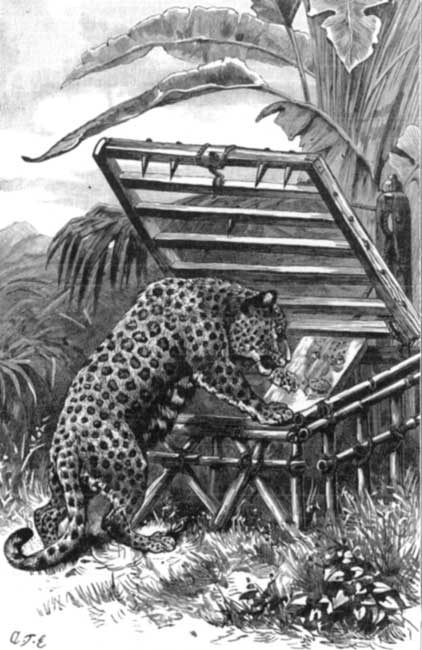 Fumble, fumble, fumble, went his nose against the iron bolt of the bin; but Tim was an expert burglar, and not easily discouraged. After many failures, his struggles were crowned by success, and Tim pressed up the lid with his strong, brown head until, with a dull thud, it feel back against the wall; then whisking his tail over his back, with a movement that expressed perfect satisfaction, Tim's head disappeared in the depths of the oats-bin.