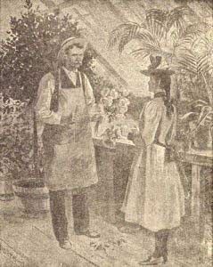 Something in the expression of the blue eyes above her made her own eyes droop. Then[Pg 283][Pg 282][Pg 281] suddenly she flushed and drew away her hand, which, all this time, had been lying in his two strong brown palms, for, as she looked down, her glance had chanced to fall upon the bunch of withered leaves which still clung in her belt.