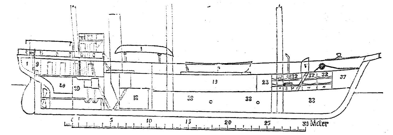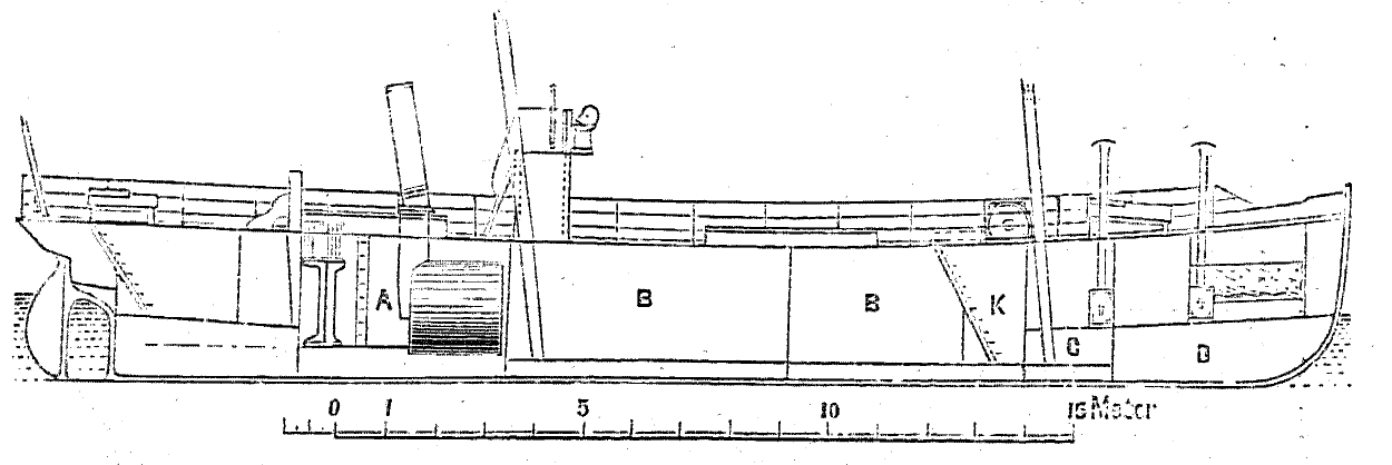 5. The Lena—Longitudinal section, drawn by Marine-engineer J. Pihlgren
