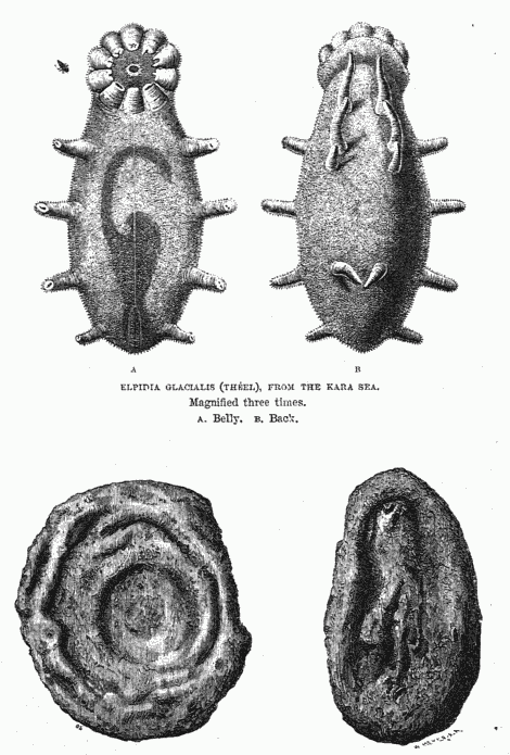 The Origin of the names Yugor Schar and Kara Sea—Rules for Sailing through Yugor Schar—The "Highest Mountain" on Earth—Anchorages—Entering the Kara Sea—Its Surroundings—The Inland-ice of Novaya Zemlya—True Icebergs rare in certain parts of the Polar Sea—The Natural Conditions of [pg xiv] the Kara Sea—Animals, Plants, Bog-ore—Passage across the Kara Sea—The Influence of the Ice on the Sea-bottom—Fresh-water Diatoms on Sea-ice—Arrival at Port Dickson—Animal Life there—Settlers and Settlements at the Mouth of the Yenisej—The Flora at Port Dickson—Evertebrates—Excursion to White Island—Yalmal—Previous Visits—Nummelin's Wintering on the Briochov Islands.