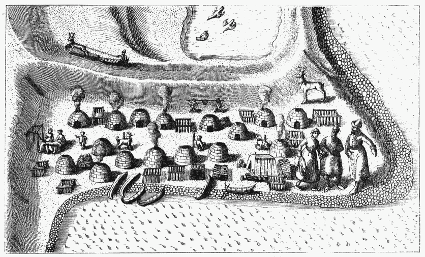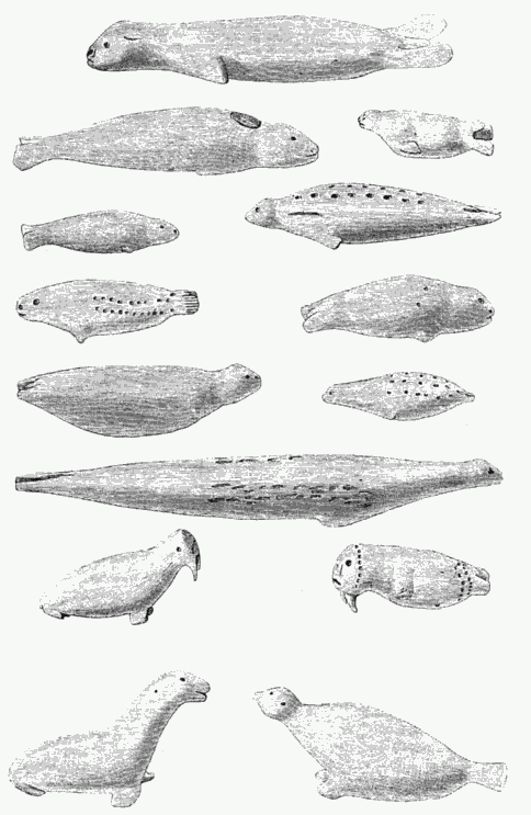 Departure from Maosoe—Gooseland—State of the Ice—The Vessels of the Expedition assemble at Chabarova—The Samoyed town there—The Church—Russians and Samoyeds—Visit to Chabarova in 1875—Purchase of Samoyed Idols—Dress and dwellings of the Samoyeds—Comparison of the Polar Races—Sacrificial Places and Samoyed Grave on Waygats Island visited—Former accounts of the Samoyeds—Their place in Ethnography.