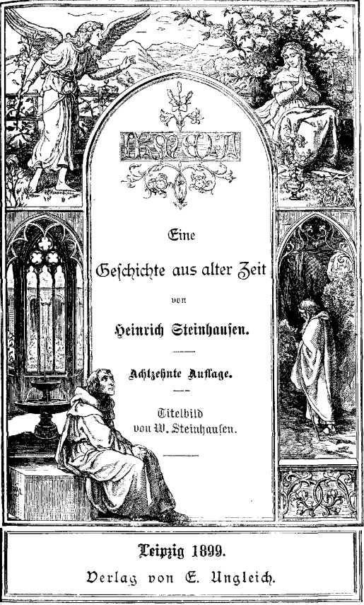 Da weckten ihn geräuschvolle Schritte; sie kamen von der vorderen Thür, die in die westliche Seite des Kreuzganges führt. Er wandte sich um und sah zwei junge Gesellen munter herbeieilen. Sie grüßten ihn fröhlich und auch er hieß sie von Herzensgrund willkommen; war er doch den Beiden von ganzer Seele zugethan, wie das Alter an der wohlgezogenen Jugend seine Lust hat und wie der Lehrer seine Schüler liebt, an denen seine Arbeit nicht umsonst ist. »Vater, Meister!« rief der Eine, »Zürnet uns nicht, daß wir heute so spät erst nach Euch Nachfrage thun. Mußten wir doch 4 gewärtig sein, hätten es auch wohl verdienet, Euer heut gar nicht mehr ansichtig zu werden. Aber der wonnigliche Lenztag lockte uns in’s Freie und so streiften wir durch Wald und Feld, bis der Abend hereinbrach.«