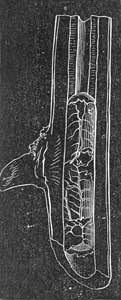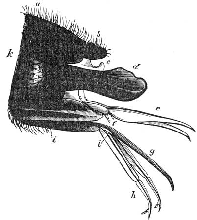 [11] As we descend to the soft, tube-like, suctorial (?) mouth of Anura, which is said not to have hard mouth-parts, we see the final point of degradation to which the mouth of the Thysanura is carried. I think that this gradual degradation of the mouth-parts in this group indicates that the appendages in these animals are not formed on an independent type, intermediate, so to speak, between the mandibulate and haustellate types, but are simply a modification (through disuse) of the mandibulate type as seen in Neuropterous insects.