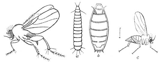 How Insects Grow. When beginning our entomological studies no fact seemed more astonishing to our boyish mind than the thought that the little flies and midges were not the sons and[Pg xv] daughters of the big ones. If every farmer and gardener knew this single fact it would be worth their while. The words larva and pupa will frequently occur in subsequent pages, and they should be explained. The caterpillar (Fig. 14, a) represents the earliest stage or babyhood of the butterfly, and it is called larva, from the Latin, meaning a mask, because it was thought by the ancients to mask the form of the adult butterfly.