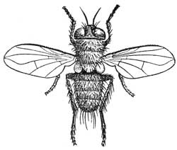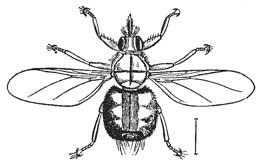 The caterpillars of various moths consume the honey and waxen cells; the two-winged flies, Volucella and Conops, and the larvæ of what is either an Anthomyia or Tachina-like fly, and several species of another genus of flies, Anthrax, together with several beetles, such as the Meloë (Fig. 16), Stylops (Fig. 17, male; 18b, female; a, position in the body of its host), and Antherophagus prey upon them.