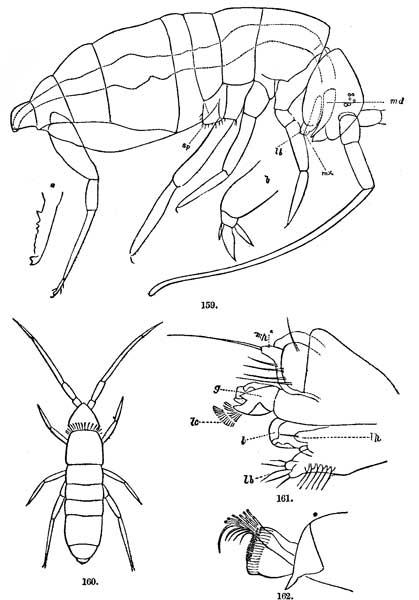 [10] The direct homology of these parts of the head (the occiput and the epicranium) with Perla, Forficula, etc., seems to me the best evidence we could have that the Poduræ are not an independent group. In these most fundamental characters they differ widely from the Myriopods. I am not aware that this important relation has been appreciated by observers.