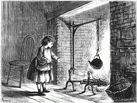 A little way out of the woods were two large stakes with a pole across them, on which hung a large kettle. Some half-burnt logs and ashes were under the kettle, but the fire was all out. A pile of wood was not far off; and branches of trees, chips, and logs were scattered around.