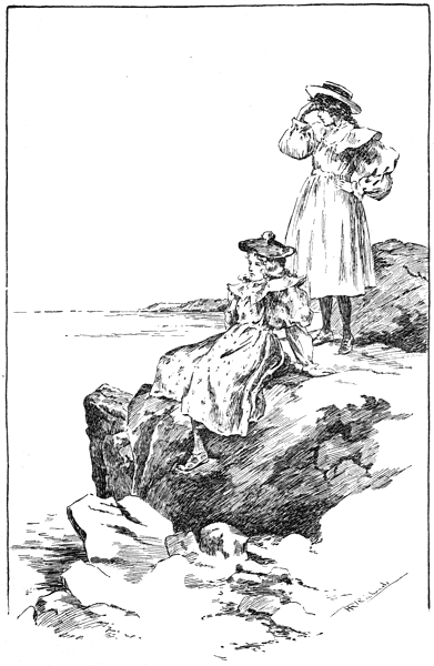 "There they go now for their swim. Boys! Boys! wait for me!" and Cricket dropped into her bathing-suit, which had been put out all ready the night before, and flew down-stairs to join the boys in their morning plunge in the sea, her bare arms gleaming from the dark-blue of her suit, and bathing-shoes protecting her feet from the sharp stones in the rough lane that led to the cove.
