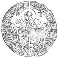 Note 10: Ce sceau est en argent coupé en quatre parties égales. Une cinquième volonté est nécessaire pour valider les actes: c'est celle du président qui possède la clef à vis qui réunit les quatre portions. Autour de ce sceau, représentant la Vierge, est l'inscription suivante en grec et en turc: Sceau des Épistates de la communauté de la Sainte-Montagne.[Retour au texte principal.]