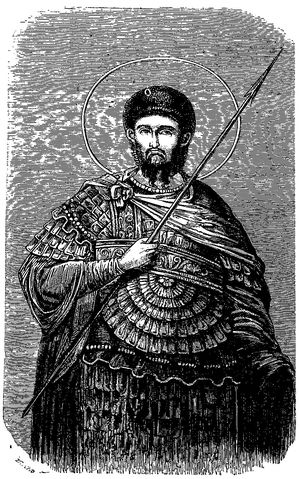 Note 21: Saint Nicolas est en grande vénération chez les Grecs. Quand les empereurs byzantins se mettaient en campagne, ils se faisaient précéder d'un étendard en haut duquel était enchâssé un doigt de saint Nicolas.[Retour au texte principal.]