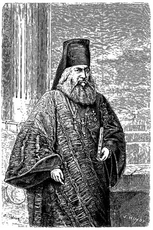 Note 9: Il y a une opinion généralement accréditée qui veut que l'Église russe soit séparée de l'Église de Constantinople, et que le tzar en soit le chef. Cela n'est pas tout à fait exact. Dans les annotations du Pedalium, recueil des canons, l'Église d'Orient dit: «Il y a eu autrefois un patriarche de Russie, mais ce patriarche n'existe plus.» En effet, Ivan III avait pris le titre de patriarche de Russie, mais Pierre le Grand ne le conserva pas, nomma un conseil d'évêques qu'il appela saint Synode dirigeant, et prit le titre de Protecteur de l'Église. Il demanda la confirmation de ces mesures au patriarche de Constantinople, lui écrivit qu'il avait toujours reconnu sa primauté synodale sur l'Église orthodoxe, et le pria de l'aider de ses conseils.[Retour au texte principal.]