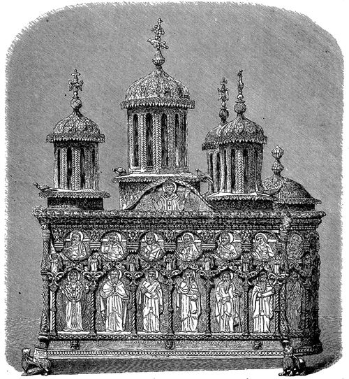 Note 40: Je n'ai pas parlé dans le cours de ce récit des reliques nombreuses que conservent les couvents de l'Athos (morceaux de la vraie croix, fragments des vêtements de Jésus-Christ, etc.); nomenclature qui eût été trop longue.[Retour au texte principal.]