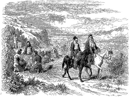 .... Depuis notre arrivée à Salonique nous n'entendions parler que des exploits d'un brigand albanais, appelé Rabottas, qui ravageait la Chalcidique. Les quelques tours de son métier qu'on racontait dans les cafés n'avaient rien de rassurant; cependant il n'y avait qu'une voix pour dire que c'était un honnête homme. Cette qualification d'honnête homme, accolée à celle de brigand, a pour nos oreilles quelque chose de malsonnant. En Turquie, cet assemblage d'épithètes semble tout naturel et l'est en effet. Il faut savoir que le raya[4] est à l'Osmanli à peu près ce que l'ilote était au Spartiate. Or le raya, qui ne peut supporter ni la surcharge d'impôts, ni l'enlèvement de sa fille ou de sa femme, ni autre injure du même genre, se retire dans la montagne pour fuir l'oppression. Jusque-là cet homme est parfaitement honnête; mais il arrive forcément qu'il ne peut vivre sur un rocher inculte de l'air du temps; alors il pille les caravanes, rançonne les villages, et, son indépendance compromettant celle de beaucoup d'autres, il prend naturellement place dans la catégorie des brigands. Ce sont ces brigands qui ont poussé la Grèce à la résistance une première fois et qui, selon toute probabilité, l'aideront une seconde. En attendant il est prudent de s'en garder quand on voyage; le pacha nous donna à cet effet une escorte de deux zaptiés de sa garde, ou bachi-bozouks, et la Porte y adjoignit deux hommes armés pour protéger ses chevaux. Notre départ était fixé au 14 mai. Un marchand de Scio, qui allait au mont Athos pour affaires, nous demanda la permission de se joindre à nous. Nous la lui accordâmes, mais, faute d'un cheval, nous nous vîmes forcés de refuser la même faveur à un moine qui revenait du Sinaï et désirait regagner sa Thébaïde. Ce fut sans regret, car le P. Gédéon était bien la personnification du moine dont il est dit: ὁ ἀνάξιος, καὶ ἀνωφελὴς ἱερομόναχος, ὁ ἀνυπόδητος καὶ ῥακενδύτης καὶ ἀλόγων ἀλογώτερος, l'indigne, l'inutile moine sacré, le va-nu-pieds, le déguenillé et le plus animal de tous les animaux, et il n'avait certes pas médité cette parole de saint Ambroise: «Que la netteté de ton visage, de tes mains et de tes vêtements soit un signe de la pureté de ton cœur et de l'innocence de ta vie.»[Retour à la Table des Matières.]