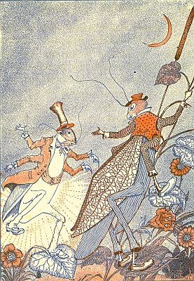 "Go 'way!" cried Kiddie Katydid. "He was nothing but a Short-horned Grasshopper. And anyone can see with half an eye that your horns are fully as long as my own."[113]