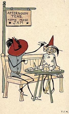 | At last, When happy, hot and tired, They found no more to see, Sam took her to a shady spot And treated her to tea. Selina's hat and dress he praised, She clapped his feeblest puns; It was a perfect carnival Of sentiment and Buns! |