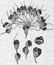 Die engen Beziehungen zwischen Kopulation und Befruchtung sind uns klar geworden, nachdem wir erkannt hatten, daß der Befruchtung im Leben der Eizelle in mancherlei Beziehung dieselbe Bedeutung zukommt, wie die Kopulation des Pantoffeltierchens, der Einzelligen: wie mit der Kopulation, so wird auch mit der Befruchtung einem Untergang der Zelle vorgebeugt. Es ist nun von[84] großem Interesse, daß die engen Beziehungen zwischen Kopulation und Befruchtung auch schon allein durch das Studium der Fortpflanzungsformen mancher Arten in wunderschöner Weise aufgedeckt werden können. Vergleichen wir z. B. die Fortpflanzungsverhältnisse nur innerhalb der Gruppe der Braunalgen, so können wir hier eine ganz allmähliche Herausentwicklung der Befruchtung, die auf einer Vereinigung äußerlich ungleicher Zellen – der unbeweglichen Eizelle und der flinken Samenzelle – beruht, aus der Kopulation, die eine Vereinigung äußerlich gleicher Zellen ist, nachweisen.