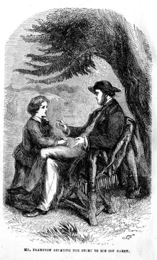 We cannot boast of many fine evenings in old England—dear old England for all that!—and when they do come they are truly lovely and worthy of being prized the more. It was on one of the finest of a fine summer that Mr Frampton, the owner of a beautiful estate in Devonshire, was seated on a rustic bench in his garden, his son Harry, who stood at his knee, looking up inquiringly into his face.