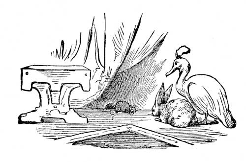 "The Mouse lives in a very small house; he had to come out to the door to us; it was quite impossible for us to enter. He looked very venerable indeed, and very learned. His hair was brushed back over his forehead, and his whiskers were grown very long. I noticed the Rabbit wore his so; he told me afterwards that it was the fashion among learned men, and though he did not presume to call himself a learned man, yet he thought it best to be in the fashion. I hardly knew what to say to the Mouse; I had been trying all the way to think of some book I might mention, but the Rabbit opened the way very easily. He told the Mouse where I was from and mentioned my connection with you, sir," (turning to the Phœnix; the Phœnix bowed—"Yes, I am well known," he said.) "Ah, indeed," said the Mouse. "The Phœnix? yes. I came across an account of the Phœnicians in a book the other day; the book was elegantly bound; the Phœnicians are a very enterprising race."