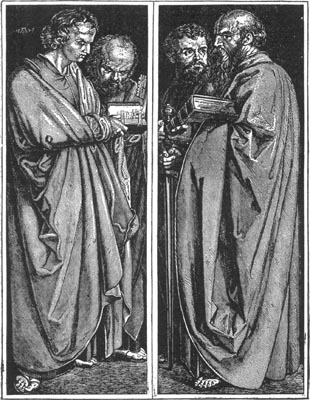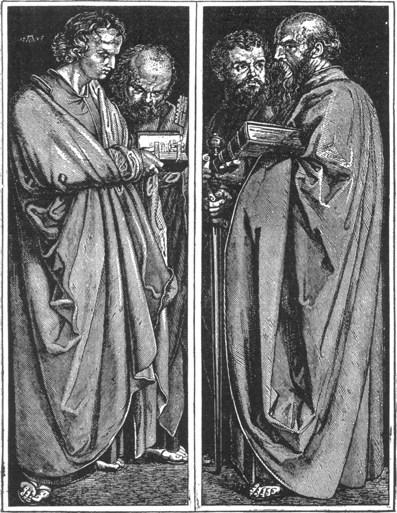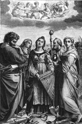 [Pg 302] After the days of classic art we have endeavored to trace painting through a period when it could scarcely be termed an art, so little of it was done, and that little was so far below our ideal. Again, this decline was followed by a Renaissance—an awakening—and from that day in the fourteenth century when the Madonna of Cimabue was carried in triumph through the streets of Florence, this art moved on with progressive steps until Michael Angelo, Leonardo, Raphael, Titian, and others highly gifted, had set up the standards which have remained as beacons and guides to all the world.