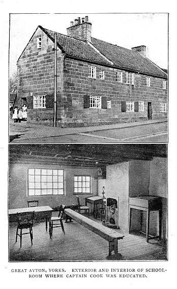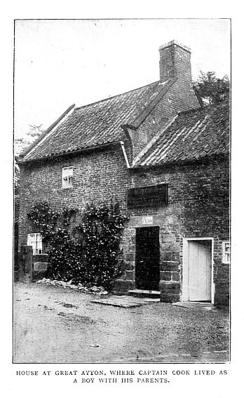 Among all those Englishmen who, from a humble origin, have risen to an honourable position, Captain James Cook is especially worthy of record. His parents were of the peasant class—his father having commenced life as a farm-labourer, and his mother being a cottager’s daughter. Probably, however, they were both superior to others of the same station, as the husband, in process of time, became farm-bailiff to his employer—a Mr Thomas Skottowe. This was about the year 1730, and the farm of which he had the management was called Airy-Holme, near Ayton, in Yorkshire. Not far from this place, at the village of Marton, near Stockton-upon-Tees; his son James was born, on October 27, 1728. James was one of nine children, all of whom he survived, with the exception of a sister who married a fisherman at Redcar.