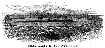 Bad weather detained the ship in the harbour of Oopoa for two more days, and when at length she got out, she was in imminent danger of striking on a reef, having got unexpectedly close to the edge of one, which was discovered from the water being shallow on one side, though deep enough under the keel to float her. Some time was expended in endeavouring to beat up to an anchorage off Bolabola, and several smaller islands were visited.