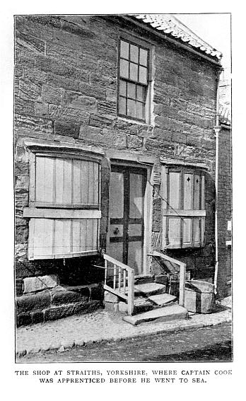 James Cook does not appear to have enjoyed any peculiar educational advantages, but owed his subsequent advancement chiefly to his own intelligence, perseverance, and diligence. He first went to a village school, and was afterwards sent, at the expense of Mr Skottowe, to an ordinary commercial school, kept by a Mr Pullen. He continued there four years, and was then apprenticed to Mr William Sanderson, a grocer and haberdasher at the fishing town of Straiths, ten miles from Whitby. It may be supposed that the occupation in which he was engaged was not suited to his taste. The sea was constantly before his eyes, and the desire to seek his fortune on it sprang up within him, and grew stronger and stronger, till in about a year after he went to Straiths he obtained a release from his engagement with Mr Sanderson, and apprenticed himself to Messrs Walker and Company, shipowners of Whitby. He went to sea for the first time when he was about eighteen, on board one of their vessels—the Truelove collier, (Note 1) of four hundred and fifty tons burden, trading between Newcastle and London. The lad soon showed that he was well fitted for his new profession, and in 1748, not two years after he had commenced it, we find him especially directed to assist in fitting for sea the Three Brothers, a new ship of six hundred tons. While he served on board this ship she was hired by Government as a transport; and on her being paid off she was employed in the Norway trade.