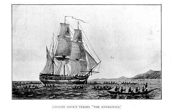 The Endeavour took her departure from Cape Horn on January 26, 1769. She ran for seven hundred leagues without land being seen. After that she passed several coral islands, the appearance of which is now familiar to most people, but in those days was but little-known. To three of them the names of Lagoon Island, Bow Island, and Chain Island were given; several of them were inhabited.