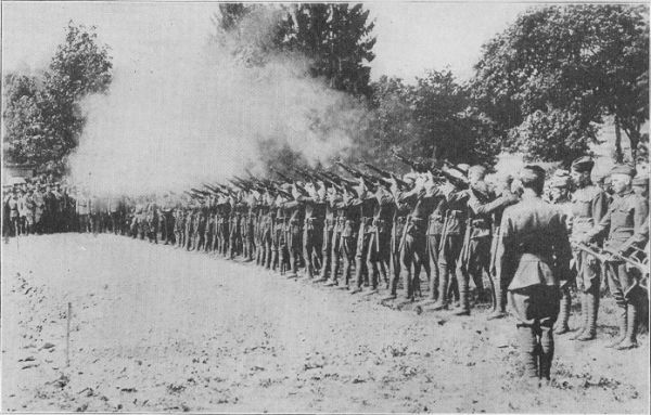 Then came the reaction. Lusty cheers rose from all sides, helmets were tossed into the air, rifles were stacked, and impromptu cake walks and fox trots staged with grotesque abandon.