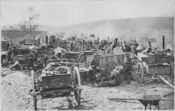 A terrific cannonade had meanwhile been in progress. Our batteries had opened along the entire front. Tons upon tons of steel were passing on wings of thunder not three hundred feet above our heads. Little heed the boys gave it, so occupied were they with duties near at hand.