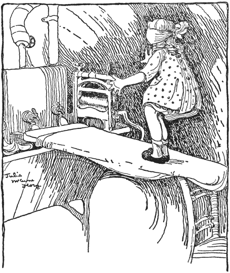 It is a book about a great many things—about David and about a sausage machine, about a little dog which was supposed to have been caught up by mistake. But when the handle was reversed out he came, whole and complete except that his bark was missing. A sausage still stuck to his tail, which presently he ate. And it proved to be his bark, for at the last bite of the sausage his bark returned. And David took his salty handkerchief from his eyes and laughed. There is a chapter on growing old—marked in pencil—a subject which the author of this book knew nothing about, never having grown old himself. And there is another chapter about a spinster, also marked. This chap22ter sings with exquisite melody, but breaks once to a sob for a love that has been lost. But the book is chiefly about children.