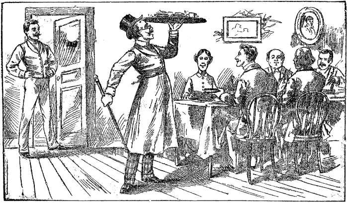 Engaged to manage the hotel—The doctor my star boarder—Discharging all the help—Hiring them over again—The doctor as table waiter—The landlady and the doctor collide—The arrival of two hus'lers—How I managed them—The landlady goes visiting—I re-modeled the house—My chambermaid elopes—Hiring a Dutchman to take her place—Dutchy in disguise—I fooled the doctor—Dutchy and the Irish shoemaker.