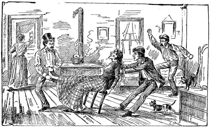 "See here, my father tells me to trim every mother's son of you that twits me of being lazy and red-headed. Now, I'm going to finish you first."