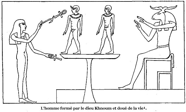 «Dieu dit: «Faisons l'homme à notre image et à notre ressemblance; qu'il domine sur les poissons de la mer, sur les oiseaux du ciel, sur les animaux, sur toute la terre et sur tout reptile qui se meut à la surface de la terre.»--Dieu créa l'homme à son image; il le créa à l'image de Dieu et il le fit mâle et femelle 4.--Yahveh 5 [6] Dieu forma l'homme du limon de la terre et lui souffla dans les narines le souffle de la vie, et l'homme fut fait âme vivante 6.»