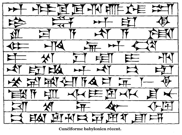 Cependant les inconvénients d'une notation purement syllabique des sons étaient si grands que l'on a peine à comprendre comment des peuples, aussi avancés dans la voie de la civilisation et des connaissances que l'étaient les Babyloniens et les Assyriens, ont pu s'en contenter, et n'ont pas cherché à perfectionner davantage un instrument de transmission et de fixation de la pensée demeuré tellement grossier encore et si souvent rebelle.