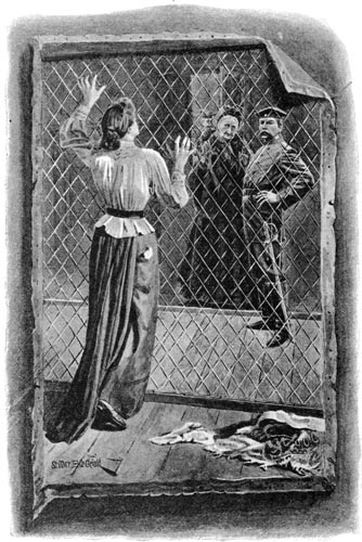 All this gives to my cell the aspect of a funeral vault, into which, a few moments ago, I entered full of feverish life and vibrating emotion, and in which I now suddenly find myself buried. From time to time, at intervals of about ten minutes, this cavern is lighted up a little more brightly. There is in the door, at about the height of a man, another window much smaller than that to [Pg 472] which I have already referred, a sort of wicket that I have not before noticed, and which on the outside appears to be protected by a shutter. At intervals, this shutter opens with a metallic noise; a ray of bluish light penetrates into my cell, and behind the wicket appears the head and part of the shoulders of a man. He wears a moustache, and for several seconds regards me attentively. Accustomed to the stronger gaslight burning in the corridor, he can only vaguely distinguish what is going on in the cell. His eyes, fixed on me at short intervals, vex and trouble me. [Pg 473] Taking advantage of one of these intervals, I rapidly change the clothes I am wearing for others larger and more comfortable, which Aunt Vera has put into my trunk, and then I throw myself upon my narrow bed. A few minutes later, amidst the noise of iron bars and padlocks being removed, my cell door opens, and then a woman appears, and behind her I notice several men wearing blue uniforms braided with silver. The woman, whose features, owing to her back being turned towards the light, I can only vaguely distinguish, appears to be either a servant, or a woman of the people; she alone enters my cell.