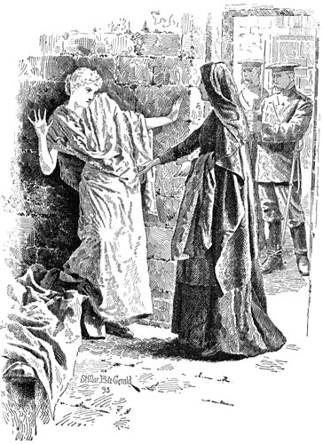 [Pg 477] After a fortnight of such days, each of which, taken by itself, seemed more empty and slower than the previous one, but which, taken as a whole, appeared, by reason of their absolute uniformity, to have passed like a dream, I am at last summoned to the cabinet of the director of the prison, in order to be interrogated. The cabinet is at the other end of the corridor, and only separated from the latter by an antechamber, the doors and windows of which are barred and grilled in the same manner as the cells. Notwithstanding this, and although the distance is so short, an escort, composed of an officer of constabulary, two subalterns, and a private, await me outside my cell, armed with revolvers in their belts and sword-bayonets in their hands. This display of force for a woman prisoner, who is little more than a child, causes me to smile.