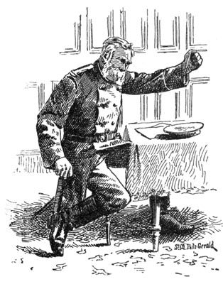 “What the devil are you fools about?” I heard him cry, as he entered, handcuffed, at the door.