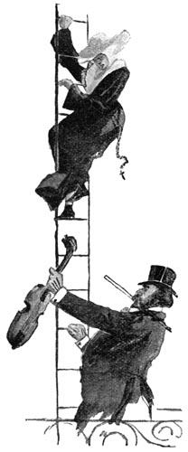 “He’ll be No. 42 on the Fifth. Thin this ladder goes up to it. Bad luck to thim, they’ve the eshcapes front an’ back, spoilin’ the look av a fine house: but it’s all paid for in the rint. Glory be to God, the avenue’s empty—all but. But it should ha’ been the back—it should ha’ been the back!”