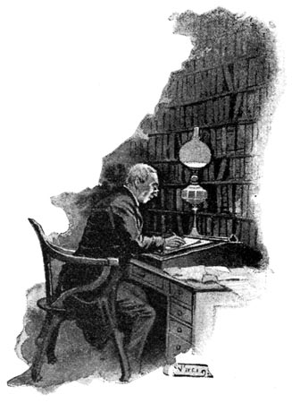 My wife thought I had only been sitting up extra late at my [Pg 566]work, and I told her nothing of my night’s adventure. But I summoned two able-bodied detectives to my aid, and they agreed to await with me the lunatic’s second visit. My family supposed that the detectives had come to assist me in getting up a tale of crime, and I did not undeceive them. So I despatched them to bed at an earlier hour than usual, on the plea that I did not wish to be disturbed, and sat with my companions in the study watching for the madman.